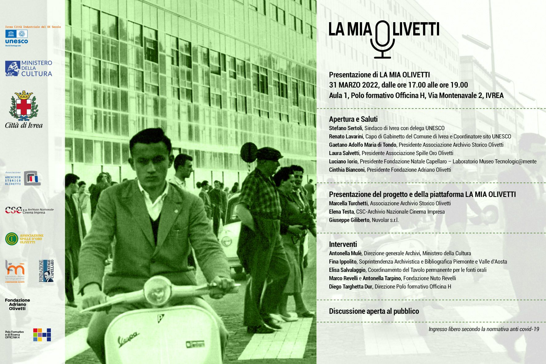 Il 31 marzo 2022 nasce a Ivrea un archivio di memorie orali. Si presenta pubblicamente “La mia Olivetti”, iniziativa culturale di raccolta, conservazione e valorizzazione delle “voci” di un’intera comunità, che partecipa attivamente a un processo di riconoscimento, costruzione e condivisione della memoria